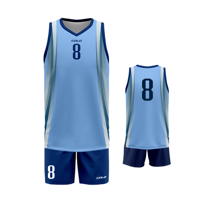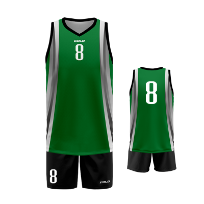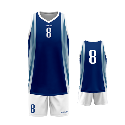 Profesjonalny strój koszykarski sublimowany – koszulka i spodenki wykonane z wysokiej jakości poliestru przeznaczony na profesjonalne zawody sportowe.