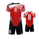 Profesjonalny strój sublimowany do piłki ręcznej – koszulka i spodenki wykonane z wysokiej jakości poliestru przeznaczony na profesjonalne zawody sportowe.