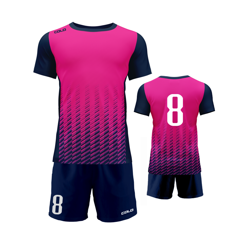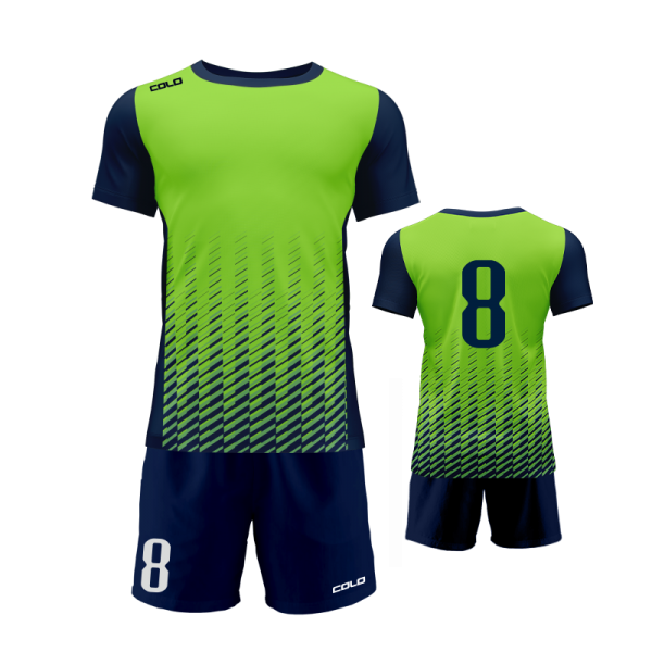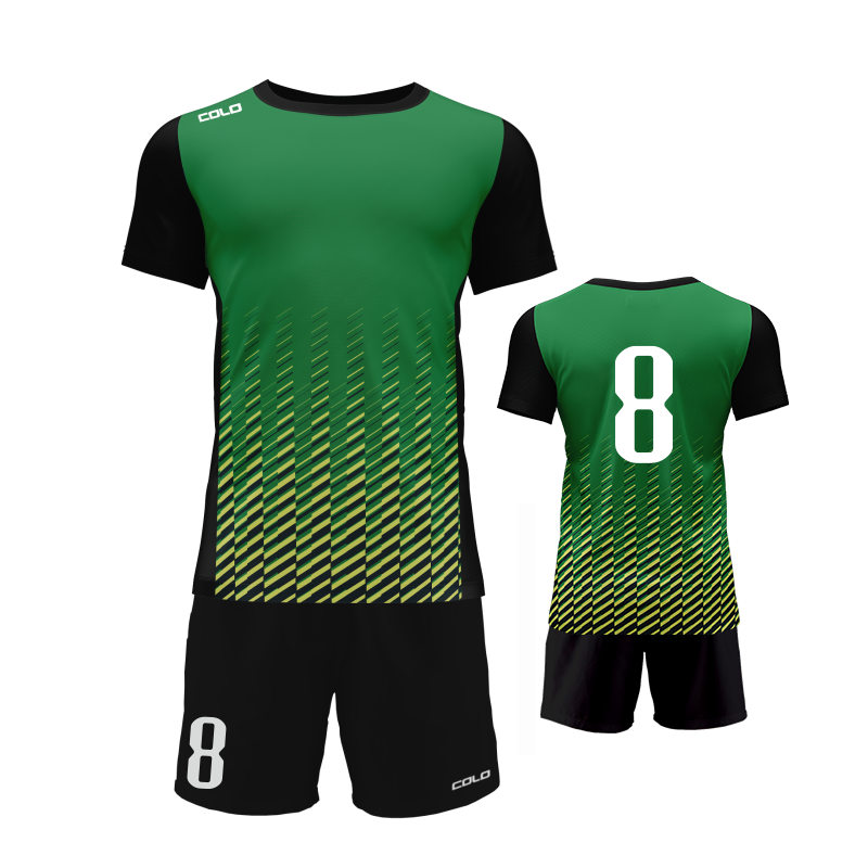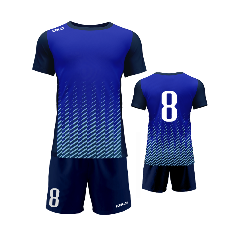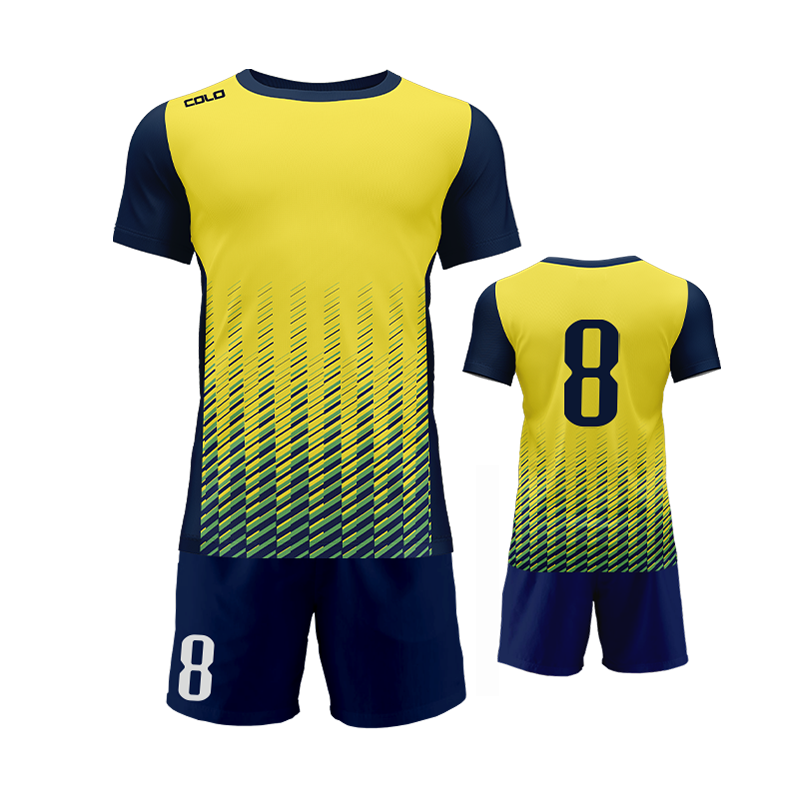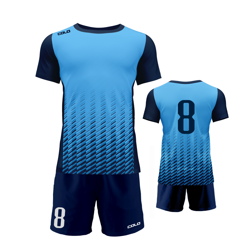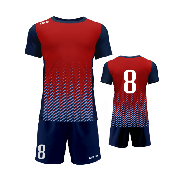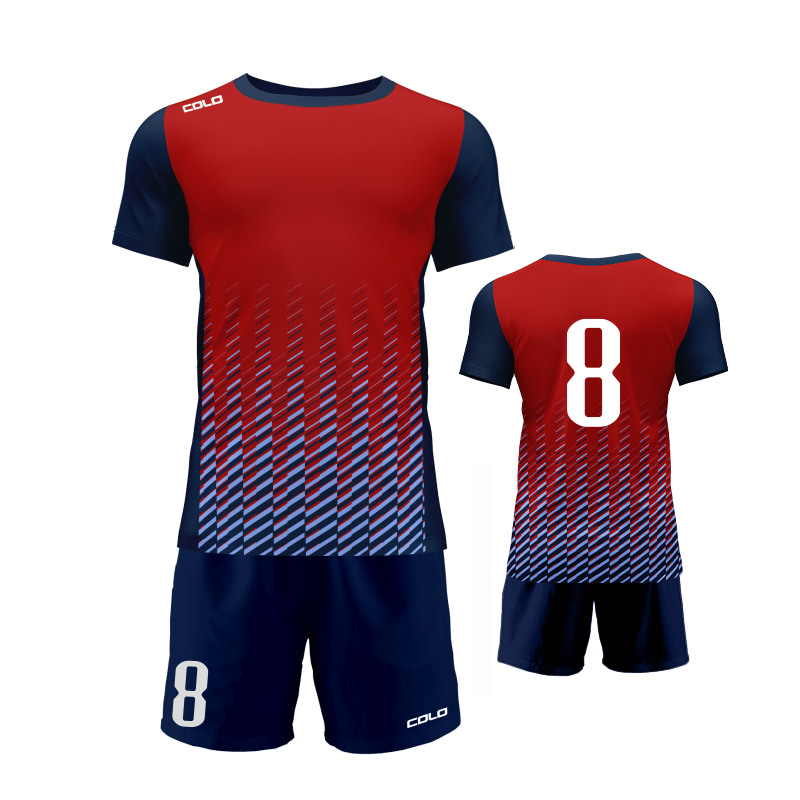 Profesjonalny strój piłkarski sublimowany – koszulka i spodenki wykonane z wysokiej jakości poliestru to idealny wybór dla drużyn sportowych, szkółek piłkarskich oraz klientów indywidualnych.