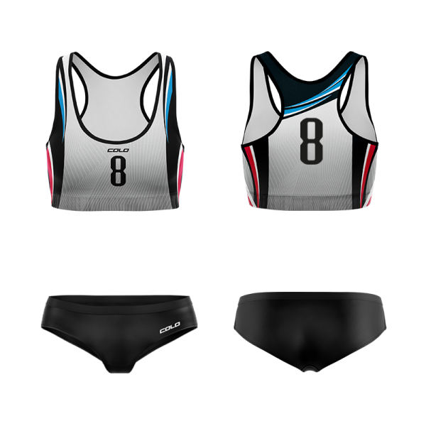 Komplet siatkarski, przeznaczony na profesjonalne zawody sportowe.