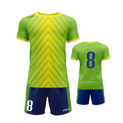 Profesjonalny strój piłkarski sublimowany – koszulka i spodenki wykonane z wysokiej jakości poliestru to idealny wybór dla drużyn sportowych, szkółek piłkarskich oraz klientów indywidualnych.