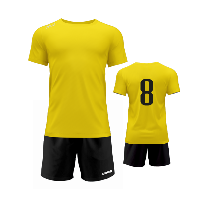 Profesjonalny strój piłkarski – koszulka i spodenki wykonane z wysokiej jakości poliestru to idealny wybór dla drużyn sportowych, szkółek piłkarskich oraz klientów indywidualnych.